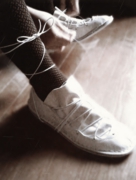Chaussures blanches comme des chaussures de ballet un peu étranges. Chaussures pour être un peu plus heureux que les gens portent.