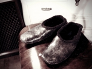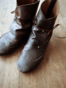 Il s'agit d'une des chaussons en cuir que j'ai fait avec un morceau de cuir. C'est la forme du classique et. Je suis fort et durent longtemps.