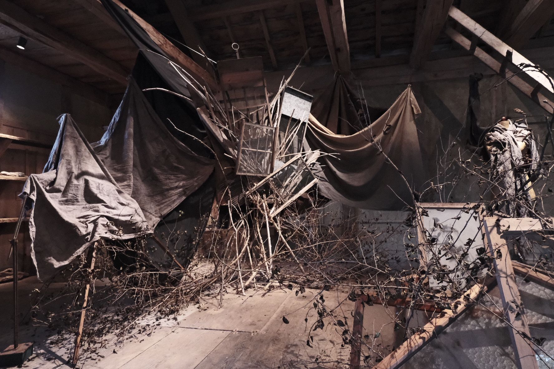 2024年,2025年に古材、染め布を使ったインスタレーションを展開 。