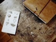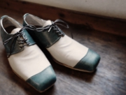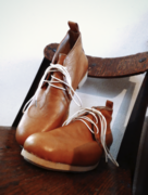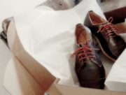 L'abri d'un cahier. Chaussures de brun et rouge.