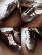 Vous êtes agréable contraste de chaussures rouges et brunes. Très intéressant coutures rouges. KENTARO paire d'yeux a été achevée.