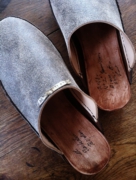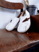 Il s'agit d'une des chaussons en cuir que j'ai fait avec un morceau de cuir. C'est la forme du classique et. Je suis fort et durent longtemps.